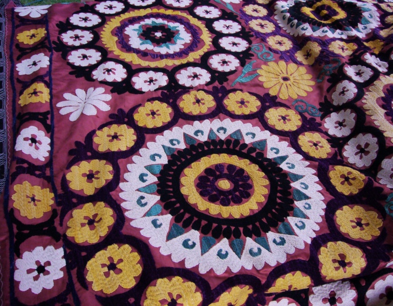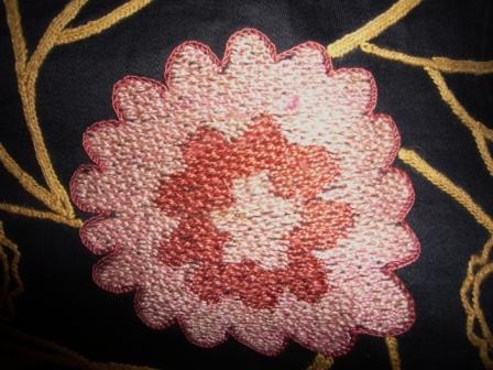 Code No. TX:11 Detail of Suzani strip. Silk embroidered cotton tent hanging L.5m 18cms x W.65 cms - $400