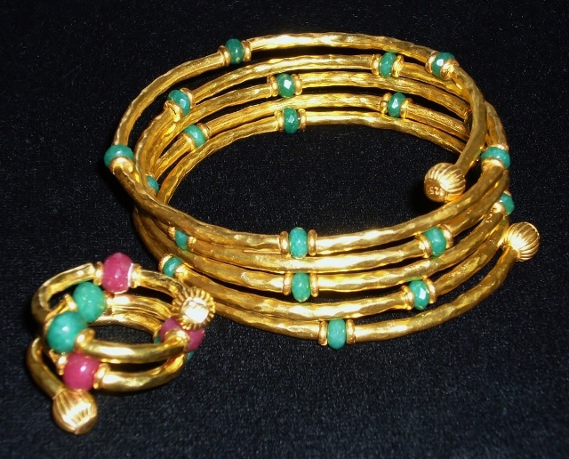Items 1 & 2: 1.- Coiled Bracelet with green beads - $140 SOLD 2. - Coiled ring - $43 (2 only)