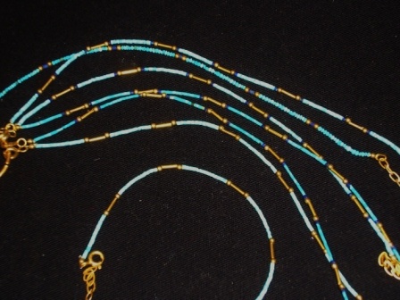 Items 5: Fine beaded bracelets - Turquoise with lapis & gold dipped bars, order 1 to 7 from top to bottom. $17.50 each