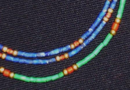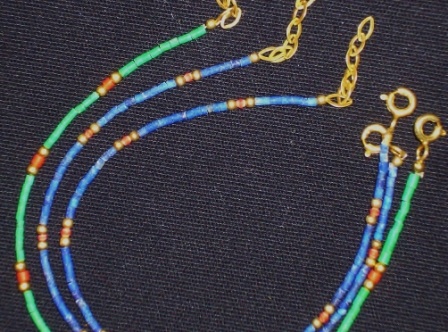 Items 8 & 9: Fine beaded bracelet - 8. Detail of Green & 9. Lapis bracelets (1 only)