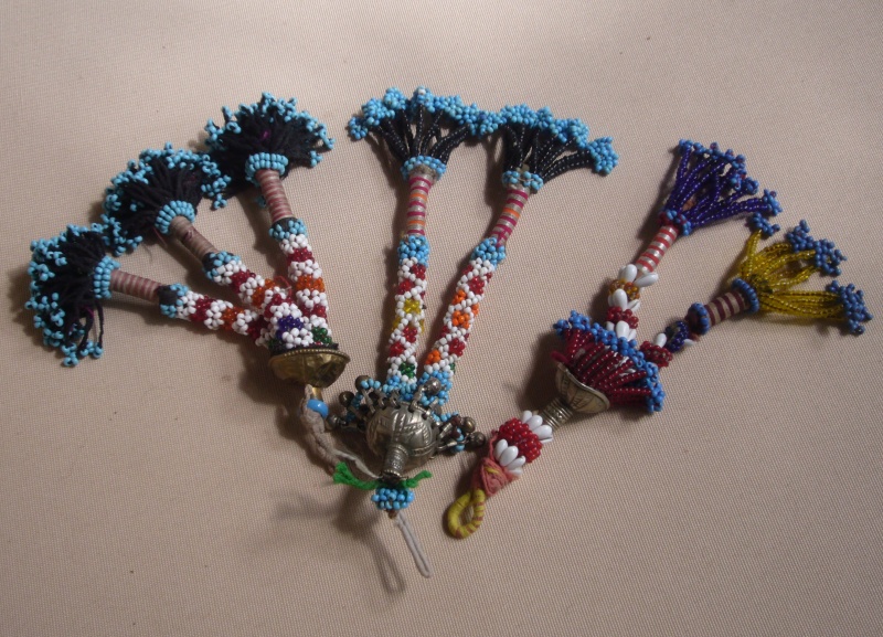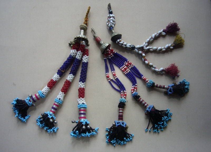 Hand beaded tassels are from Uzbekistan and the Turkoman regions. They were made to embellish the entries to the Bedouin tents, the celebration costumes of the women or the harness for their working horses but add a fun and interesting feature when hung from cupboard door keys, from lamps or placed in a bowl - just some ideas. Each piece is unique.