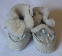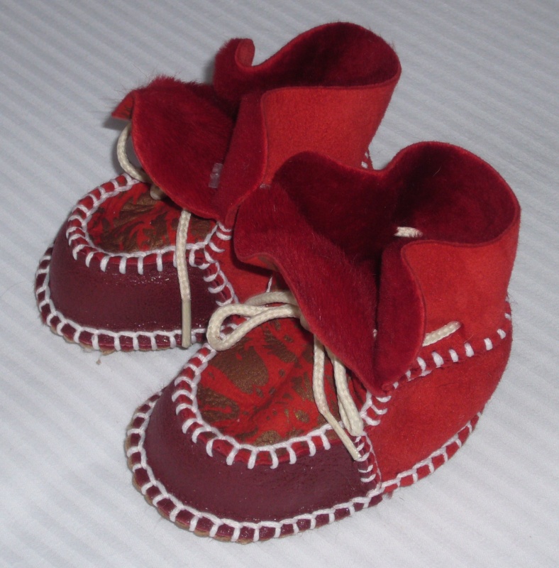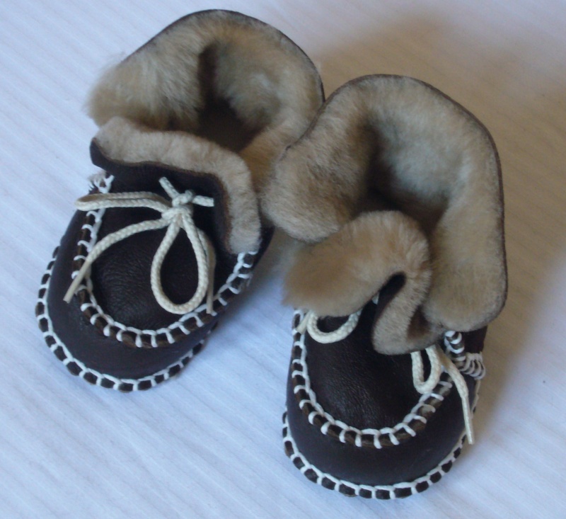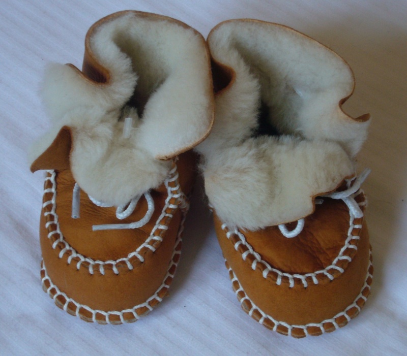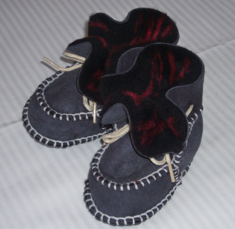 These snug super soft hand made booties are well insulated and fasten at the ankle with laces to secure them. The tops can be folded down or left up for additional warmth.