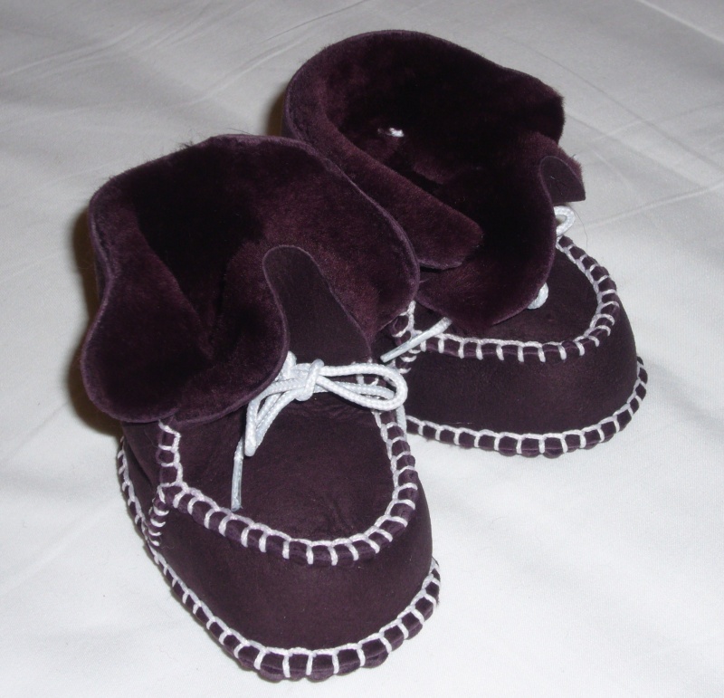 Sizes, measurement taken inside the stitching on sole: 10, 10.5, 11, 11.5 & 12 cms. Allow space for the fleecy lining.