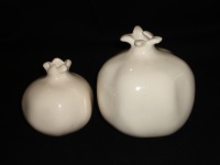 Decorative, festive and stylish! These ceramic Pomegranates are handmade with glazes in rich red, green, cream or metallic gold/silver or silver/gold. Available in two sizes: