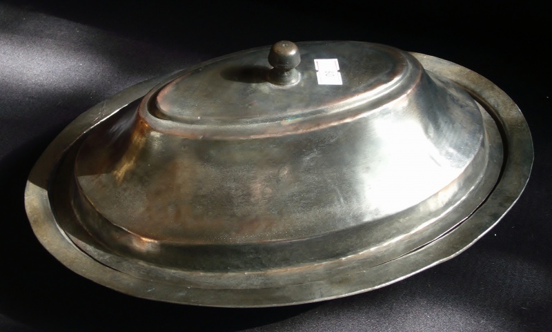 Item Code: HA:9:3 - Serving dish with lid. Tinned copper. L: 30 cm x W: 20 cm appox. - $110